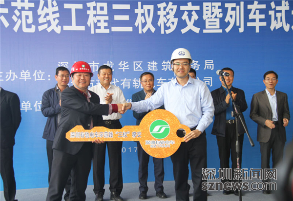 深圳新闻网3月30日讯(深圳报业集团特派记者 邓涛)3月30日上午,备受期待和关注的龙华现代有轨电车在完成了工程初验和竣工验收后,终于迎来了“三权移交”暨列车上线试运行调试仪式。这也是继1月19日首列车交付,3月23日电通之后,龙华有轨电车工程建设的又一个重要里程碑目标。据悉,龙华有轨电车在试运营前将空载试跑3个月,6月底将正式投入使用。