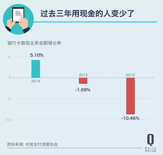时间:2017-04-28日前,中国支付清算协会发布的一份《中国支付清算行业运行报告(2017)》,展示了去年银行和支付相关的数据,有个结论你估计也能从生活中感受到:取现金的人变少了。